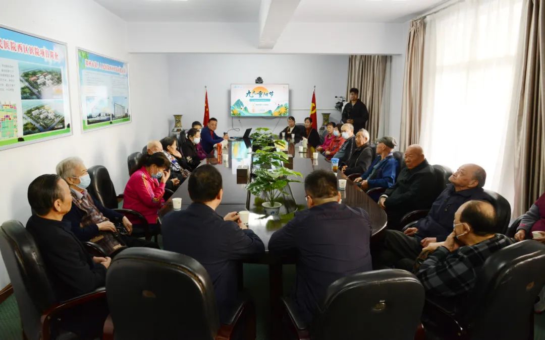 上午8:30,會議室內(nèi)老同志們歡聚一堂,共慶重陽佳節(jié),共話我院發(fā)展。市八院黨委專職副書記舒寶德,副院長樊向濤參會。