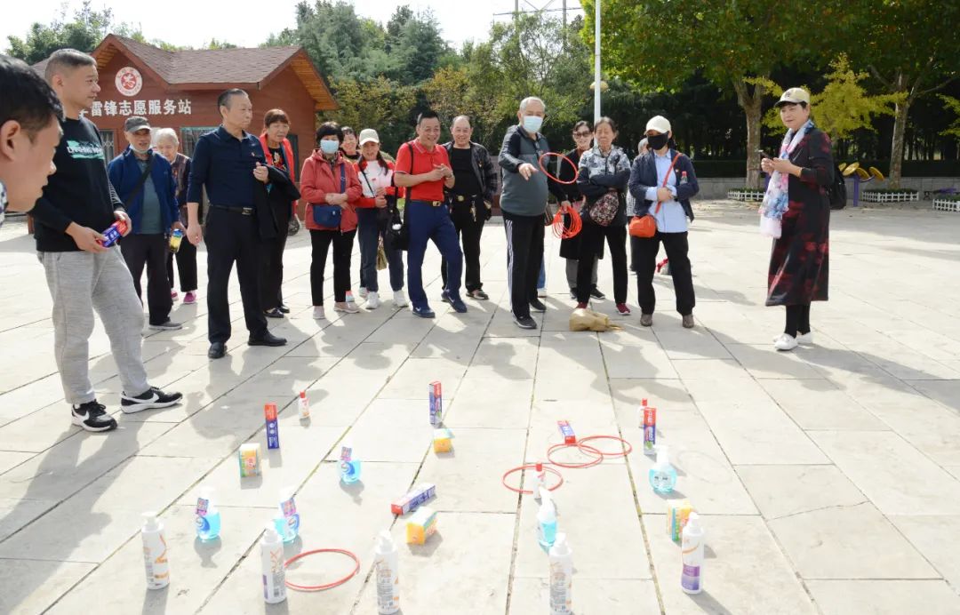 滎陽京襄城遺址生態(tài)園綠樹成蔭,空氣新鮮,老同志們沿著平坦的園區(qū)道路健步行走,大家個個精神飽滿,有的三五結(jié)伴,共享秋景;有的傾心交流,相敘既往,現(xiàn)場一片歡聲笑語。此次秋游還設(shè)置了游戲項目,套圈大比拼環(huán)節(jié),老人們集中精力,瞄準目標,飛快拋出套圈,順利獲得自己的“戰(zhàn)利品”;趣味保齡球環(huán)節(jié),只見大家在工作人員的指導下,彎著腰,眼睛盯著前方的瓶子,自信地擲出保齡球,享受著其中的樂趣;還有廣受大家歡迎的無水釣“魚”游戲,老同志們相互切磋垂釣技能,在拋竿、收竿中比拼誰釣的“魚”最多……這些游戲項目既符合老年人身心特點,又兼具趣味性,老同志們玩得不亦樂乎。