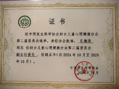 10月26日-27日,第十五次全國(guó)優(yōu)生科學(xué)大會(huì)在武漢隆重舉辦。大會(huì)期間,中國(guó)優(yōu)生科學(xué)協(xié)會(huì)婦女兒童心理健康分會(huì)換屆選舉順利完成。經(jīng)過(guò)民主選舉,我院副院長(zhǎng)孔德榮作為河南省唯一入選專(zhuān)家,當(dāng)選協(xié)會(huì)副主任委員,孕產(chǎn)期心理健康中心主任李崢當(dāng)選委員。
