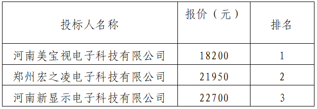 根據(jù)詢價最低價中標原則,詢價小組一致同意河南美寶視電子科技有限公司以最低價中標,報價金額:18200元。