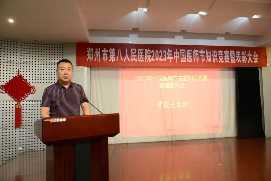 黨委副書記、院長賈成浩在致辭中提到,“敬佑生命 救死扶傷”是醫(yī)師永恒的誓言和不變的承諾,在推進(jìn)健康鄭州、健康中國的進(jìn)程中,我院醫(yī)師不僅是醫(yī)學(xué)理論的實(shí)踐者,也是健康知識的傳播者,更是群眾健康的守護(hù)者。希望大家守護(hù)醫(yī)者初心、滌蕩醫(yī)者廉心、鍛造醫(yī)者匠心、不忘醫(yī)者仁心。