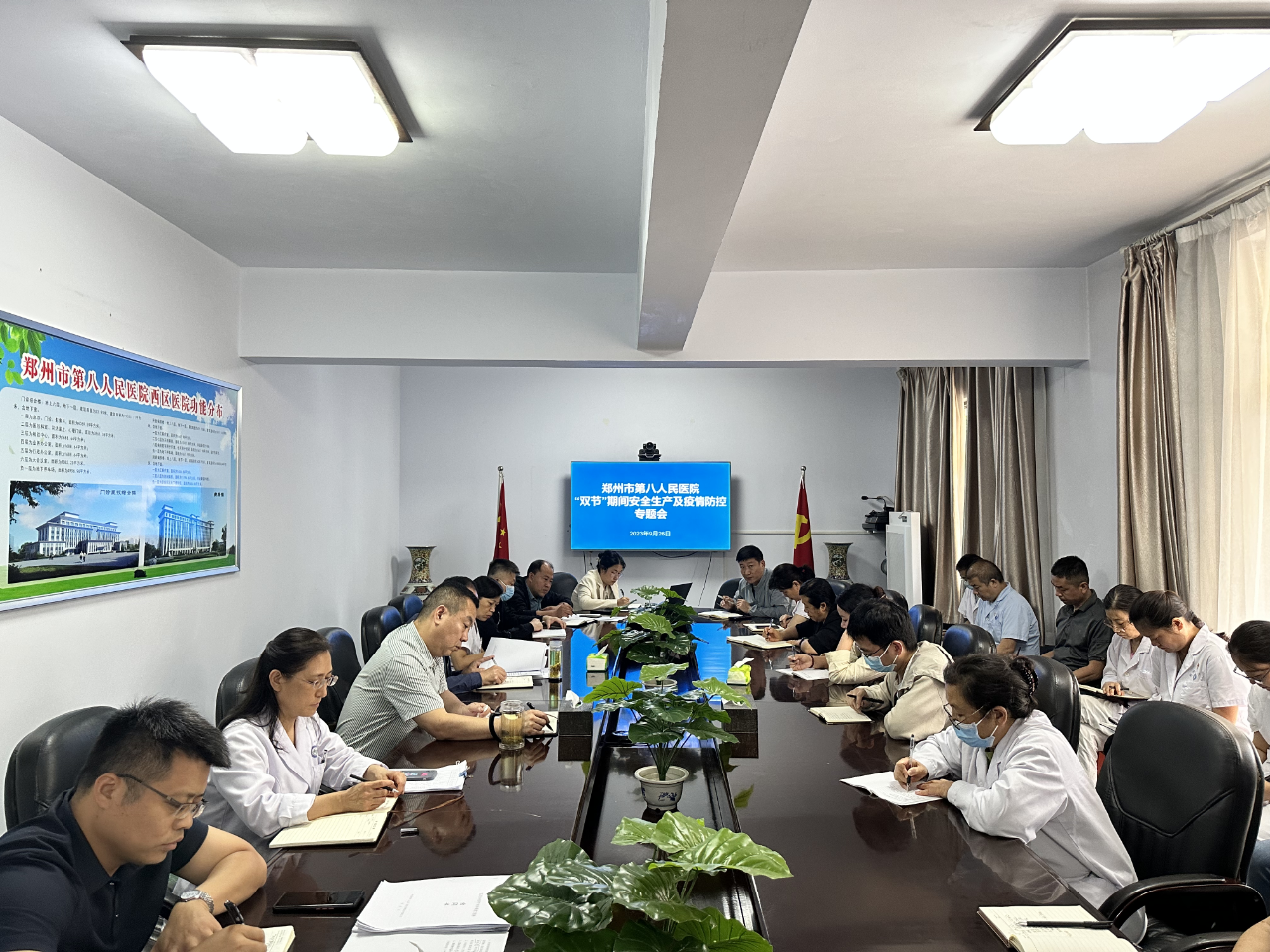 為確保中秋、國慶“雙節(jié)”期間,醫(yī)院安全有序運(yùn)行,讓職工、患者及家屬度過一個歡樂祥和平安的假期,9月26日,鄭州市第八人民醫(yī)院召開節(jié)前部署會,對近期重點工作和“雙節(jié)”期間的廉潔紀(jì)律、安全生產(chǎn)等工作進(jìn)行了安排部署。會上,傳達(dá)委關(guān)于中秋節(jié)國慶節(jié)放假安排的通知精神,對節(jié)假日期間安全生產(chǎn)、假期值班、保衛(wèi)工作、疫情防控、患者服務(wù)等再強(qiáng)調(diào)、再排查、再部署。