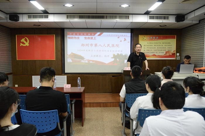 為提高安全防范意識(shí),進(jìn)一步普及消防安全知識(shí),扎實(shí)有效開展安全生產(chǎn)工作。4月24日上午,我院特邀河南省消防協(xié)會(huì)彭沖教官來(lái)院授課,2023年以來(lái)各科室新進(jìn)人員及規(guī)培人員參加了此次培訓(xùn)。