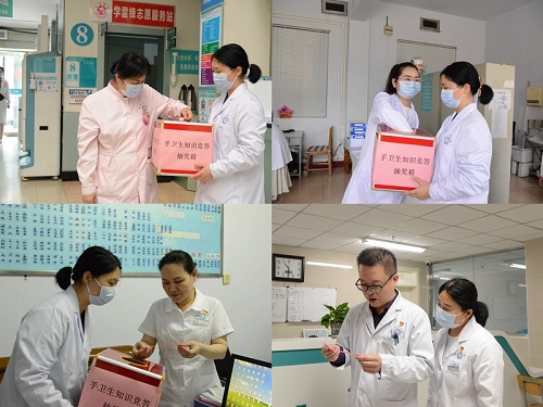 感控科人員深入醫(yī)技科室和臨床病區(qū)互動問答,大家積極踴躍搶答,激發(fā)很高的學(xué)習(xí)熱情。在歡笑聲中,參與者既掌握了手衛(wèi)生知識,也贏取了實(shí)用的紀(jì)念品,達(dá)到了寓教于樂的目的。