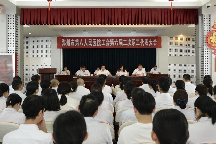 副院長(zhǎng)、工會(huì)主席黃偉代表院工會(huì)作題為《凝心聚力筑夢(mèng)八院 暖心服務(wù)強(qiáng)基賦能》的鄭州市第八人民醫(yī)院2023年工會(huì)工作報(bào)告;反饋職工代表提案和建議意見辦理情況。