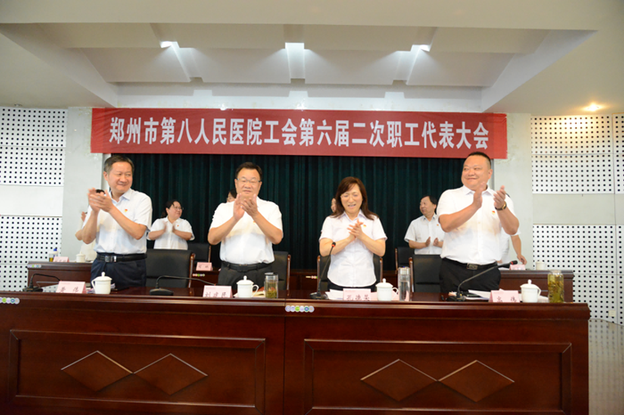 8月28日,在莊嚴(yán)的國(guó)歌聲中,鄭州市第八人民醫(yī)院第六屆第二次職工代表大會(huì)順利召開。黨委書記、院長(zhǎng)劉建民,副院長(zhǎng)孔德榮,副院長(zhǎng)、工會(huì)主席黃偉,副院長(zhǎng)高偉及52名職工代表參加會(huì)議。大會(huì)由副院長(zhǎng)孔德榮主持。