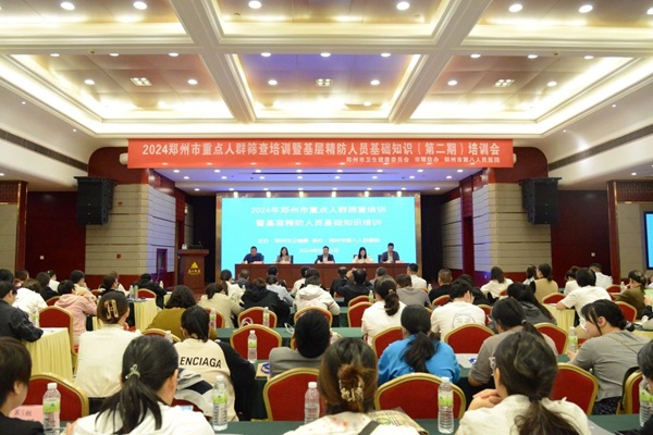 9月24日至25日,鄭州市重點人群篩查培訓暨基層精防人員基礎知識培訓會在嵩山飯店隆重召開。鄭州市衛(wèi)生健康委醫(yī)政處副處長石夢斐、醫(yī)政處主任科員勤波,市八院黨委書記、院長劉建民,副院長孔德榮、高偉等領導出席。會議由市八院副院長高偉主持,以線上線下相結合的方式進行,來自鄭州市二級及以上綜合醫(yī)院婦產科和婦幼保健院人員,以及九個區(qū)縣基層精防專干,共300余人到場參加,2200余人通過線上直播參與學習。