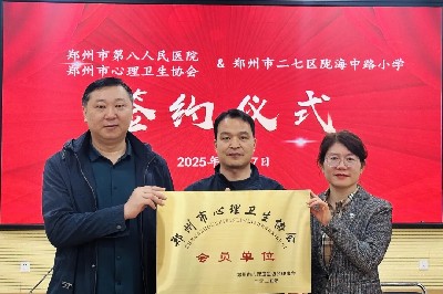 最后,我院與鄭州市心理衛(wèi)生協(xié)會(huì)、隴海中路小學(xué)共同簽訂了合作協(xié)議,并現(xiàn)場(chǎng)授予二七區(qū)隴海中路小學(xué)“鄭州市心理衛(wèi)生協(xié)會(huì)會(huì)員單位”牌匾,標(biāo)志著“醫(yī)-校-社”多方合作的正式開(kāi)啟。