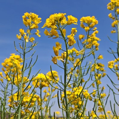 艷陽下如燦爛華章的油菜花