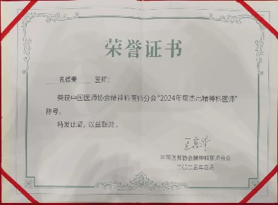 中國醫(yī)師協(xié)會“杰出精神科醫(yī)師”,是目前國內(nèi)精神醫(yī)學(xué)領(lǐng)域設(shè)立的最高獎項,每三年頒發(fā)一次,每次表彰10位在我國精神醫(yī)學(xué)領(lǐng)域長期做出突出貢獻的優(yōu)秀精神科醫(yī)師,借此廣泛宣傳當代中國精神科醫(yī)師良好的精神風(fēng)貌,促進全國精神衛(wèi)生行風(fēng)建設(shè),激勵同道們?yōu)榘l(fā)展我國精神衛(wèi)生事業(yè)做出更大貢獻??椎聵s教授獲得這一殊榮,可謂實至名歸!