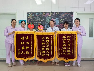 “這兒的醫(yī)術(shù)和態(tài)度,每個細(xì)節(jié)都讓我們娘倆覺得特別溫暖。這三面錦旗,是我們?nèi)业男囊?,真的是太謝謝咱們醫(yī)院了!”